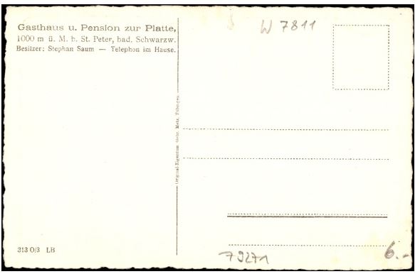The date of the postcard is not known, but since it mentions Stefan Saum it probably originates from the 1950s. Plattenhof now appears on the web as a smart gasthaus and restaurant, while the area up the hill where the camps were located is occupied by wind turbines. (Look it up on Google earth if you’re interested – Plattenhof, St. Peter will find it)