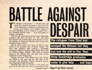 During the 2020 lockdown John Grundy was rooting around in his loft and found an old copy (1960’s) of Men Only, not his usual reading matter. Puzzled, he skimmed the pages and found an extraordinary article about Tibetan refugees in Nepal. (Click here or on the image to read the article.) Roger Catchpole takes up the story: